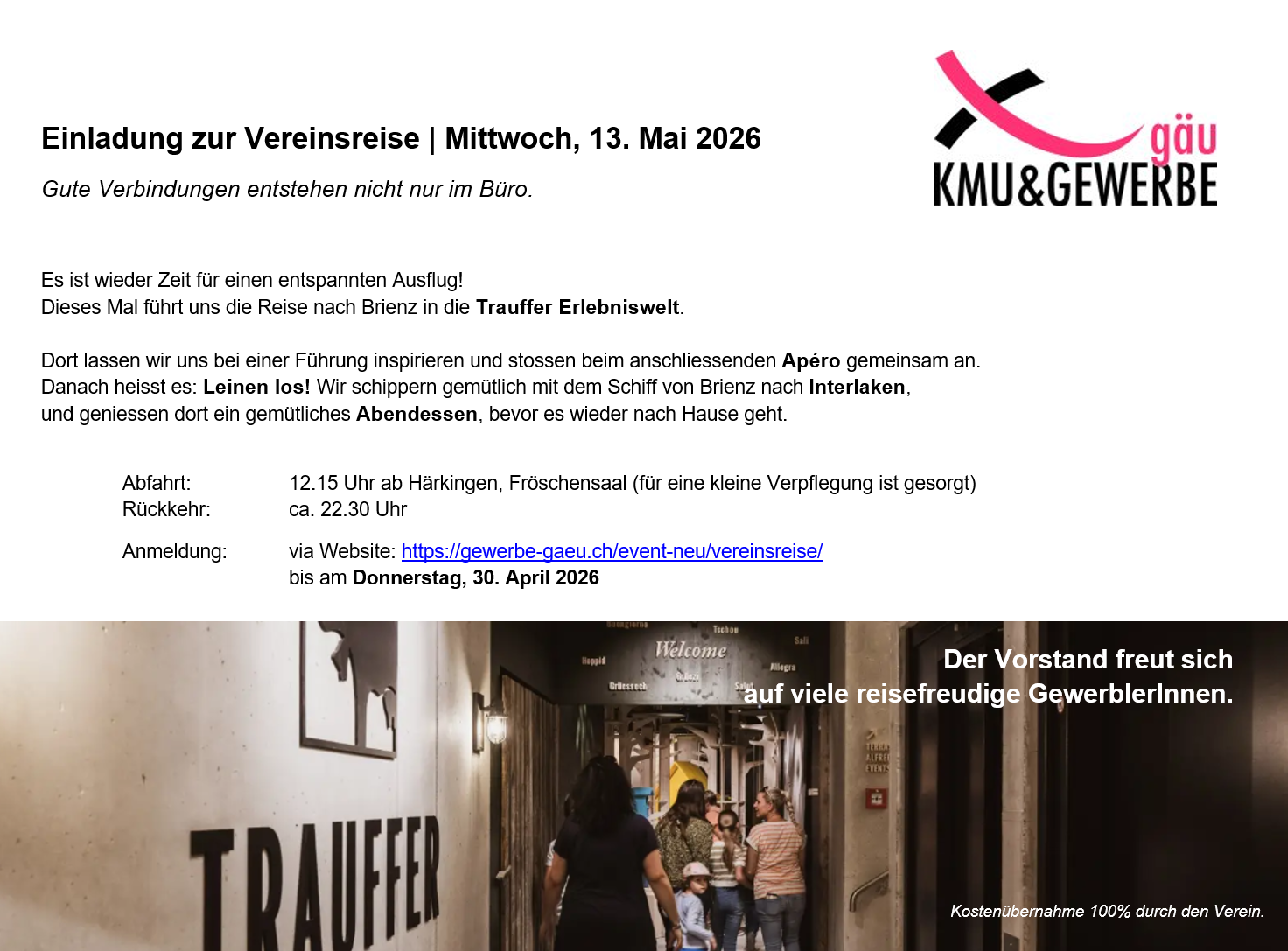 Vereinsreise (Trauffer Erlebniswelt + Schifffahrt nach Interlaken)